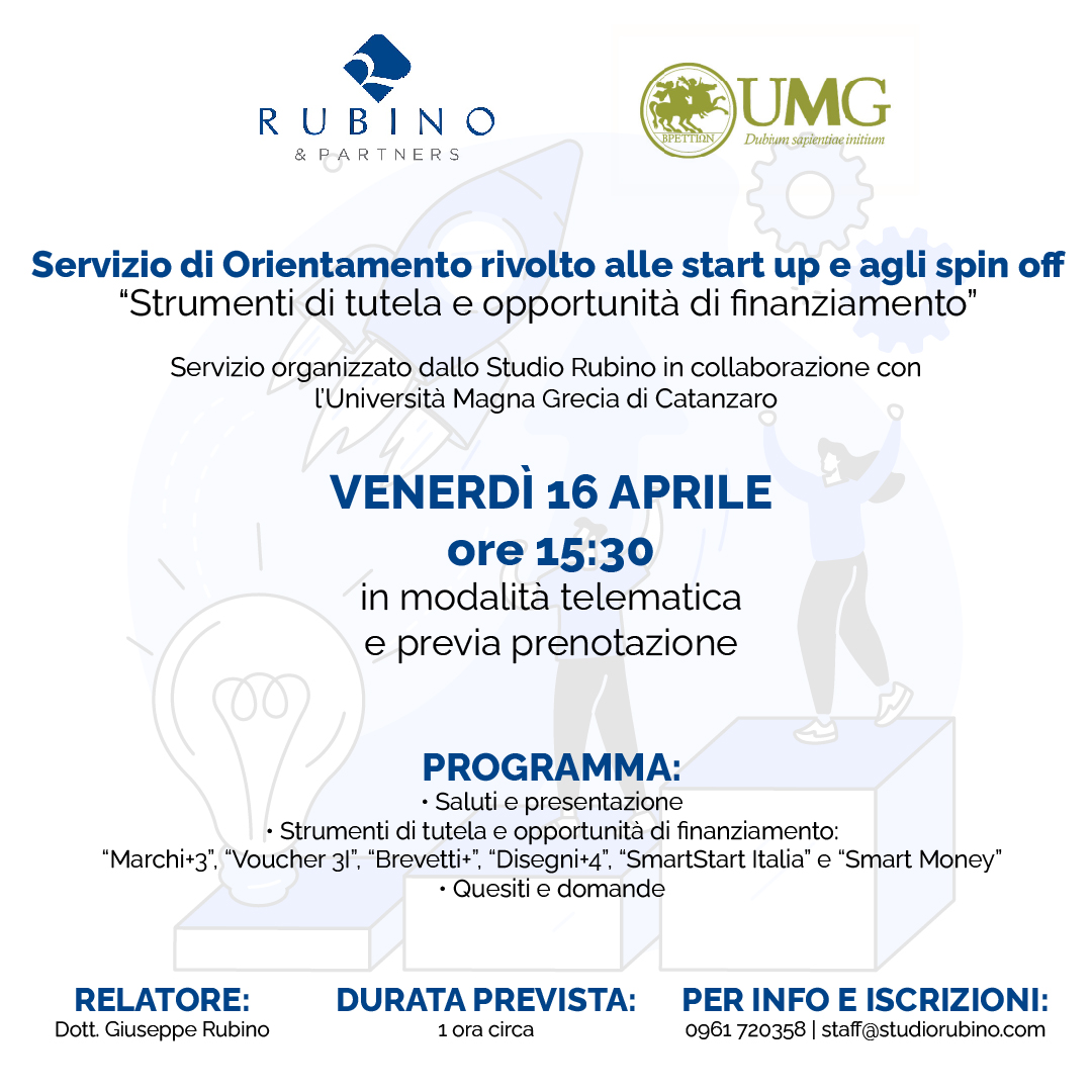 il SERVIZIO DI ORIENTAMENTO rivolto a start up e spin off universitari dal titolo: “Strumenti di tutela e opportunità di finanziamento”